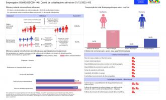 Informações sobre a diferença salarial entre mulheres e homens, Composição do total de empregados por sexo e raça/cor, Critérios de remuneração e ações para garantir diversidade.